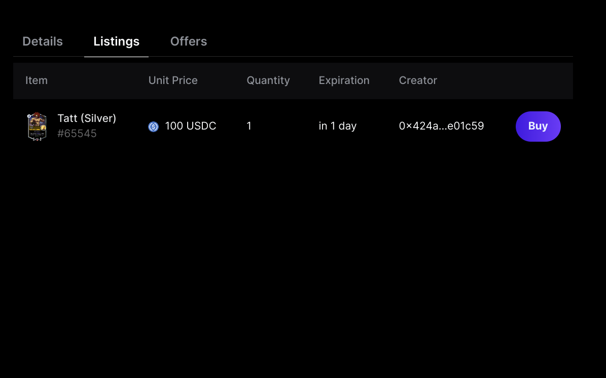 orders(OrderbookOrder[]) [orderId(string) -- order idtokenContract(string) -- the collection contracttokenId(string) -- the tokenId of the collection in the orderisListing(bool) -- is true if it's a listing for sale, or false if it's an offerquantity(string) -- the number of tokens the order is forquantityRemaining(string) -- the number of tokens after the ordercurrencyAddress(string) -- the currency the token is trading inpricePerToken(string) -- the price per tokenexpiry(string) -- the expiry of when the order is no longer validorderStatus(OrderStatus) -- the status of the order as an enum fom"OPEN","CLOSED","CANCELLED"createdBy(string) -- the address the order was created bycreatedAt(uint64) -- the time the order was createdorderbookContractAddress(string) -- the orderbook contract address ]